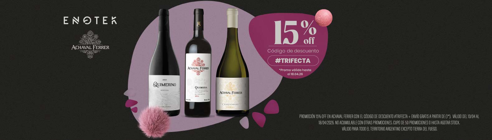 15% DE DESCUENTO ACHAVAL FERRERPromo: 15% DE DESCUENTO EN ACHAVAL FERRER CON EL CÓDIGO #TRIFECTA. PROMOCIÓN VÁLIDA DESDE EL 10/04 HASTA EL 18/04/2026 Ver mas |