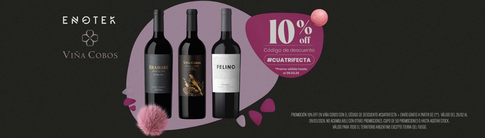 10% DE DESCUENTO EN VIÑA COBOSPromo: 10% DE DESCUENTO EN VIÑA COBOS CON EL CÓDIGO #CUATRIFECTA. PROMOCIÓN VÁLIDA DESDE EL 26/02 HASTA EL 09/03/2026 Ver mas |