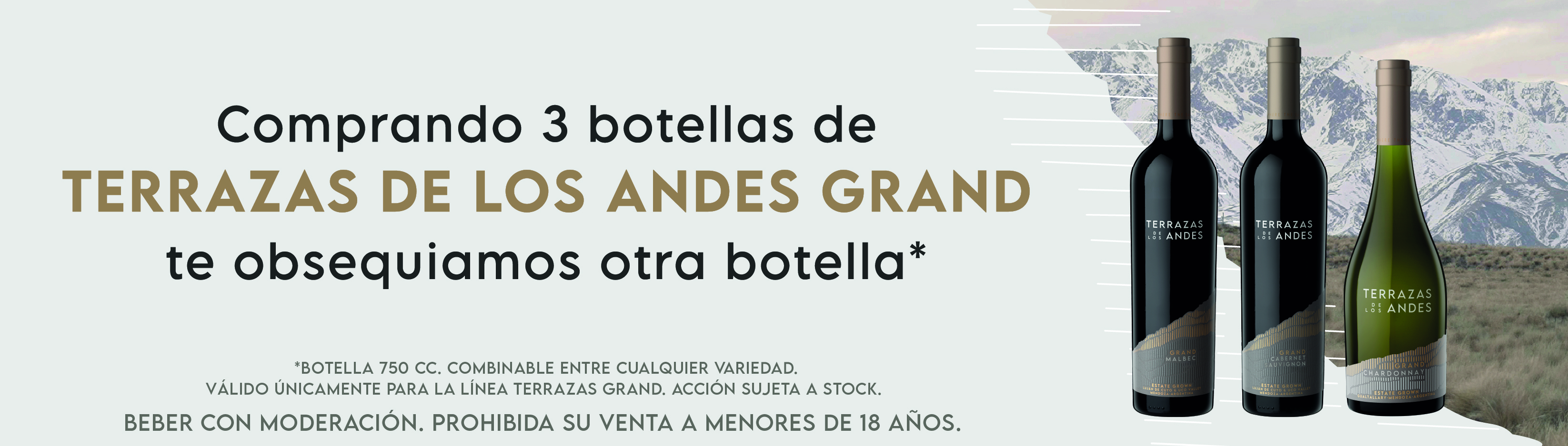 4x3 EN TERRAZAS DE LOS ANDES GRANDPromo: COMPRANDO 3 BOTELLAS DE TERRAZAS DE LOS ANDES GRAND TE OBSEQUIAMOS 1 DE REGALO. PROMOCIÓN VÁLIDA DESDE EL 05/02 HASTA AGOTAR STOCK. Ver mas |