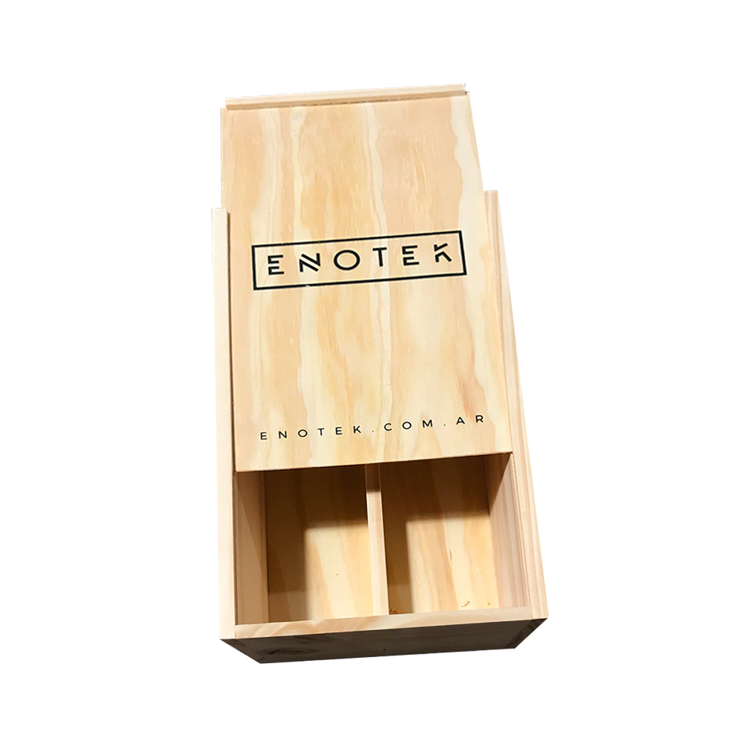 Caja para vinos de madera 2 botellas con separador Enotek.