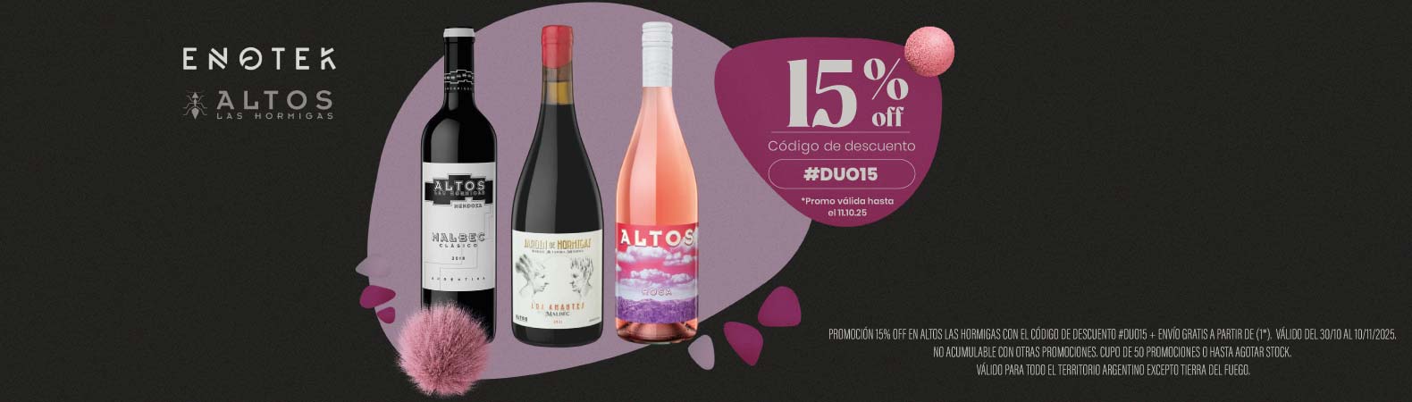 15% DE DESCUENTO EN MALBEC ARGENTINOPromo: 15% DE DESCUENTO EN MALBEC ARGENTINO CON EL CÓDIGO #ENEMANI. PROMOCIÓN VÁLIDA DESDE EL 21/10 HASTA EL 02/11/2025 Ver mas |