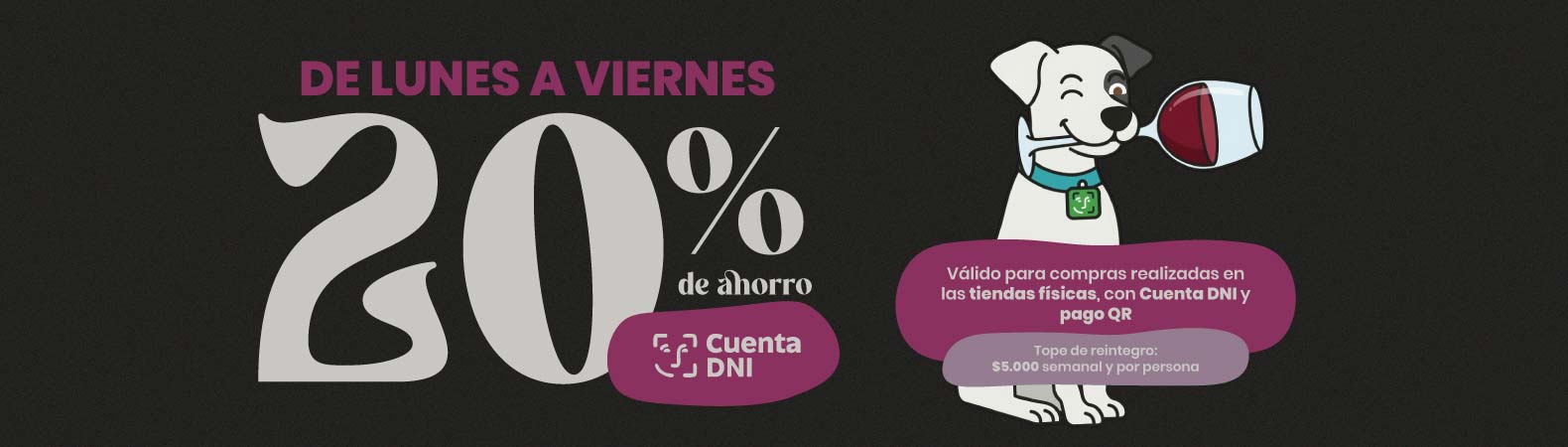 20% DE REINTEGRO CON CUENTA DNI Y PAGO QR - SOLO VÁLIDO EN TIENDA FÍSICAPromo: 20% DE REINTEGRO DE LUNES A VIERNES DURANTE EL MES DE MARZO ABONANDO CON CUENTA DNI Y PAGO QR. PROMOCIÓN VÁLIDA ÚNICAMENTE EN TIENDA FÍSICA, NO DISPONIBLE EN TIENDA ONLINE. TOPE DE REINTEGRO $5.000 POR SEMANA Y POR PERSONA. Ver legales |