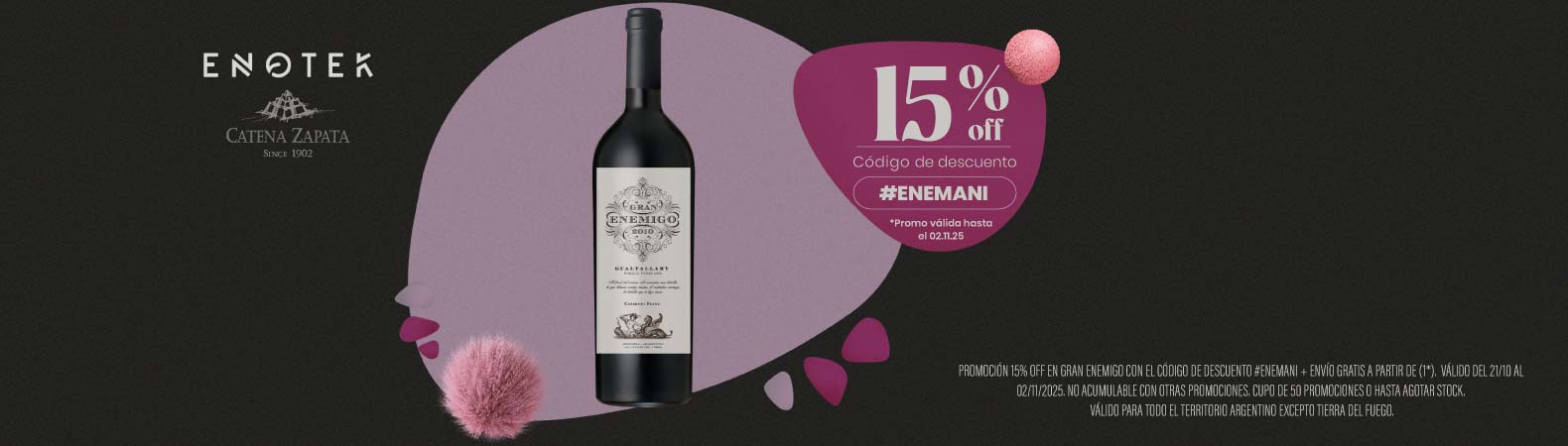 15% DE DESCUENTO EN GRAN ENEMIGOPromo: 15% DE DESCUENTO EN GRAN ENEMIGO CON EL CÓDIGO #ENEMANI. PROMOCIÓN VÁLIDA DESDE EL 21/10 HASTA EL 02/11/2025 Ver mas |