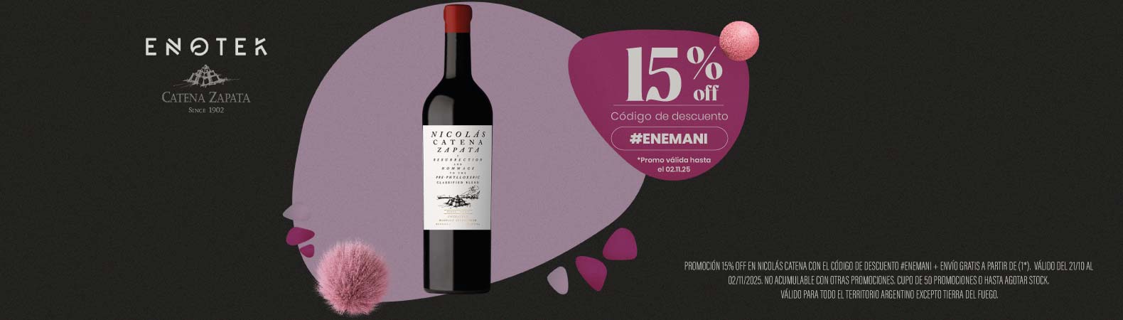 15% DE DESCUENTO EN NICOLAS CATENAPromo: 15% DE DESCUENTO EN NICOLAS CATENA CON EL CÓDIGO #ENEMANI. PROMOCIÓN VÁLIDA DESDE EL 21/10 HASTA EL 02/11/2025 Ver mas |