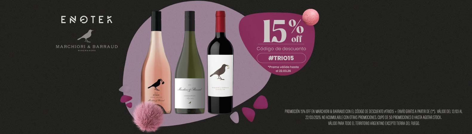 15% DE DESCUENTO EN MARCHIORI & BARRAUDPromo: 15% DE DESCUENTO EN MARCHIORI & BARRAUD CON EL CÓDIGO #TRIO15. PROMOCIÓN VÁLIDA DESDE EL 12/03 HASTA EL 22/03/2026 Ver mas |